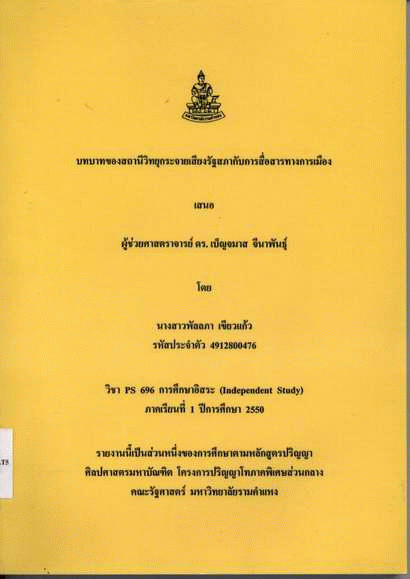 บทบาทของสถานีวิทยุกระจายเสียงรัฐสภากับการสื่อสารทางการเมือง / พัลลภา เขียวแก้ว.