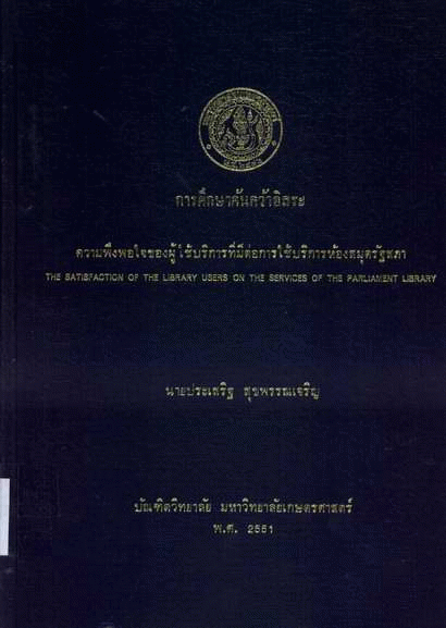 ความพึงพอใจของผู้ใช้บริการที่มีต่อการใช้บริการห้องสมุดรัฐสภา / ประเสริฐ สุขพรรณเจริญ.