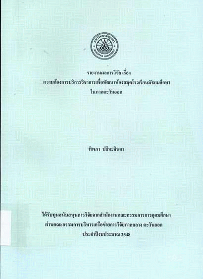 ความต้องการบริการวิชาการเพื่อพัฒนาห้องสมุดโรงเรียนมัธยมศึกษาในภาคตะวันออก / ทิพภา ปลีหะจินดา.