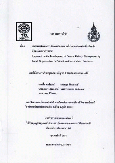 แนวทางพัฒนาการจัดการประมงชายฝั่งโดยองค์กรท้องถิ่นจังหวัดปัตตานีและนราธิวาส / เกื้อ ฤทธิบูรณ์ ... [และคนอื่น ๆ].
