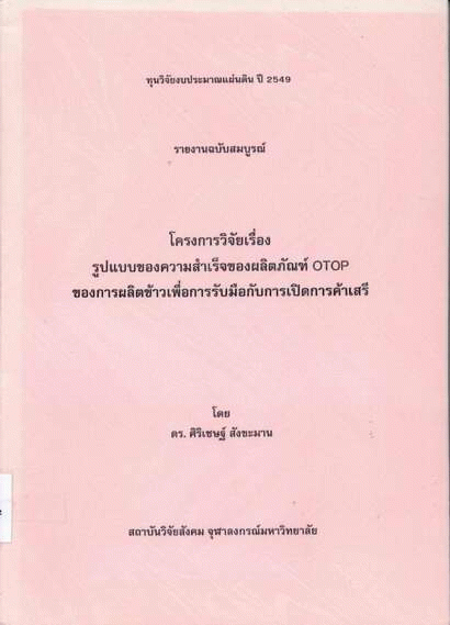 รูปแบบของความสำเร็จของผลิตภัณฑ์ OTOP ของการผลิตข้าวเพื่อการรับมือกับการเปิดการค้าเสรี / ศิริเชษฐ์ สังขะมาน.