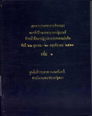 เอกสารประกอบการพิจารณาสภาที่ปรึกษาของนายกรัฐมนตรี ทำหน้าที่สภาปฏิรูปการปกครองแผ่นดิน วันที่ 22 ตุลาคม - 20 พฤศจิกายน 2519 เล่ม 1 / งานบริการค้นคว้า ศูนย์บริการเอกสารและค้นคว้า สำนักงานเลขาธิการรัฐสภา.