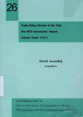 Trade policy review of the USA : the WTO secretariat report, volume three : 2001 (No.26) / รังสรรค์ ธนะพรพันธุ์, บรรณาธิการ.