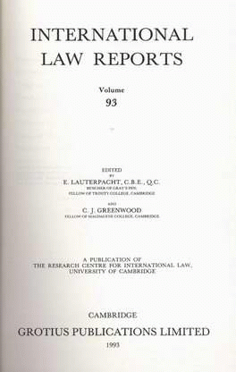 International law reports volume 93 / edited by E. Lauterpacht and C. J. Greenwood.