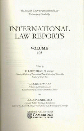 International law reports volume 103 / edited by E. Lauterpacht, C. J. Greenwood and A. G. Oppenheimer.