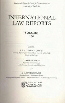 International law reports volume 106 / edited by E. Lauterpacht, C. J. Greenwood and A. G. Oppenheimer.