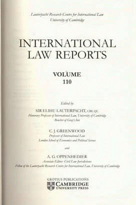 International law reports volume 110 / edited by Sir Elihu Lauterpacht, C. J. Greenwood and A. G. Oppenheimer.