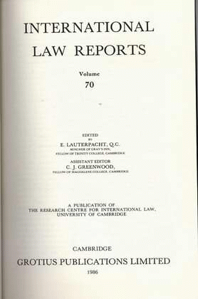 International law reports volume 70 / edited by E. Lauterpacht and C. J. Greenwood.