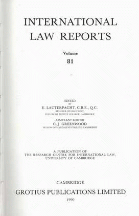 International law reports volume 81 / edited by E. Lauterpacht and C. J. Greenwood.