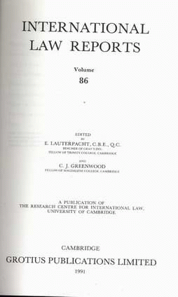 International law reports volume 86 / edited by E. Lauterpacht and C. J. Greenwood.
