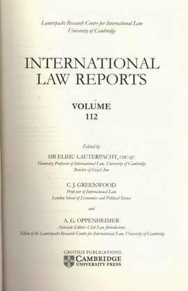 International law reports volume 112 / edited by Sir Elihu Lauterpacht, C. J. Greenwood and A. G. Oppenheimer.