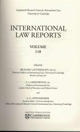 International law reports volume 118 / edited by Sir Elihu Lauterpacht, C. J. Greenwood and A. G. Oppenheimer.