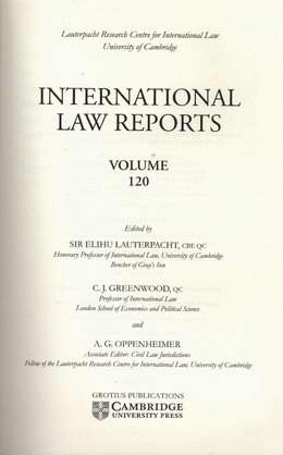 International law reports volume 120 / edited by Sir Elihu Lauterpacht, C. J. Greenwood and A. G. Oppenheimer.