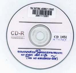 National Assembly Library of Thailand | Audio-Visual Materials collection | Audio-Visual zone | CD 1451 (เรียกดูชั้นหนังสือ(เปิดด้านล่าง)) | พร้อมให้บริการ | 3961172981 |