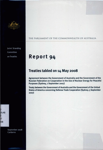 The Parliament of the Commonwealth of Australia, Joint Standing Committee on Treaties report 94 : treaties tabled on 14 May 2008.
