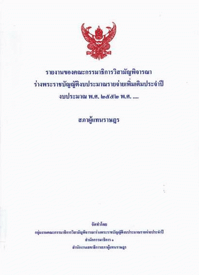 รายงานของคณะกรรมาธิการวิสามัญพิจารณาร่างพระราชบัญญัติงบประมาณรายจ่ายเพิ่มเติมประจำปีงบประมาณ พ.ศ. 2552 พ.ศ.... / สำนักกรรมาธิการ 1 สำนักงานเลขาธิการสภาผู้แทนราษฎร.