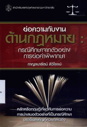 ย่อความกับงานด้านกฎหมาย : กรณีศึกษาจากตัวอย่างการย่อคำพิพากษา / กาญจนารัตน์ ลีวิโรจน์