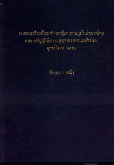 ระบบการเลือกตั้งสมาชิกสภาผู้แทนราษฎรในประเทศไทยตามบทบัญญัติรัฐธรรมนูญแห่งราชอาณาจักรไทย พุทธศักราช 2550 / วัชราพร ยอดมิ่ง.
