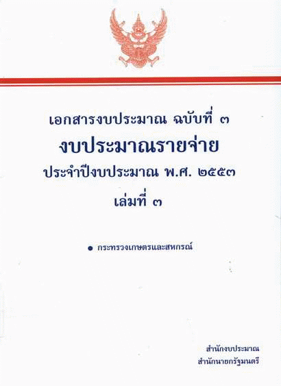 เอกสารงบประมาณ ฉบับที่ 3 งบประมาณรายจ่าย ประจำปีงบประมาณ พ.ศ. 2553 เล่มที่ 3 กระทรวงเกษตรและสหกรณ์ / สำนักงบประมาณ.