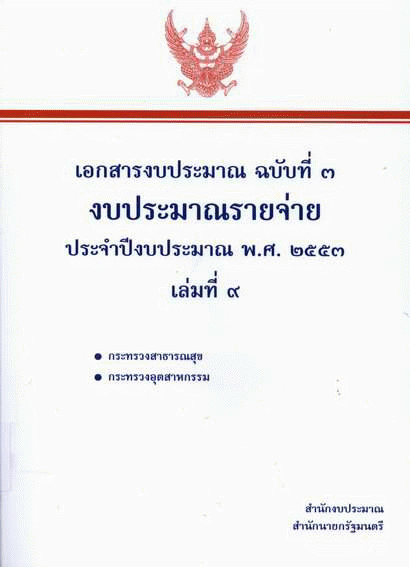 เอกสารงบประมาณ ฉบับที่ 3 งบประมาณรายจ่าย ประจำปีงบประมาณ พ.ศ. 2553 เล่มที่ 9 กระทรวงสาธารณสุข กระทรวงอุตสาหกรรม / สำนักงบประมาณ.