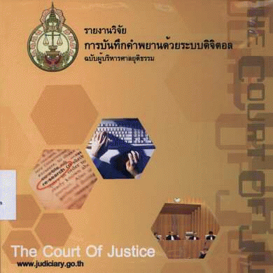 การบันทึกคำพยานด้วยระบบดิจิตอล ฉบับผู้บริหารศาลยุติธรรม / คณะวิจัย ภาควิชาวิศวกรรมคอมพิวเตอร์ มหาวิทยาลัยเทคโนโลยีพระจอมเกล้าธนบุรี