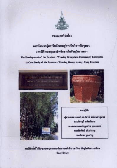 การพัฒนากลุ่มอาชีพจักสานสู่การเป็นวิสาหกิจชุมชน : กรณีศึกษากลุ่มอาชีพจักสานในจังหวัดอ่างทอง / ลัคนา พูลเจริญ