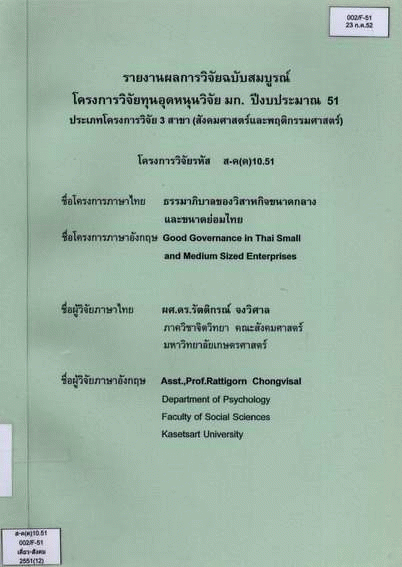 ธรรมาภิบาลของวิสาหกิจขนาดกลางและขนาดย่อมไทย / รัตติกรณ์ จงวิศาล