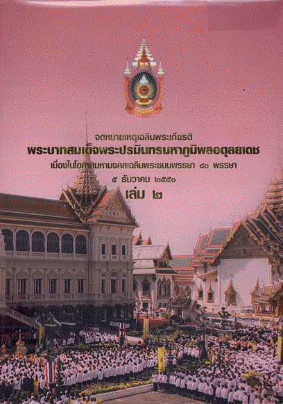 จดหมายเหตุเฉลิมพระเกียรติพระบาทสมเด็จพระปรมินทรมหาภูมิพลอดุลยเดช เนื่องในโอกาสมหามงคลเฉลิมพระชนมพรรษา 80 พรรษา 5 ธันวาคม 2550 เล่ม 2 / กรมศิลปากร.