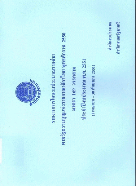 รายงานการโอนงบประมาณรายจ่ายตามรัฐธรรมนูญแห่งราชอาณาจักรไทย พุทธศักราช 2550 มาตรา 169 วรรคสาม ประจำปีงบประมาณ พ.ศ. 2551 (1 เมษายน - 30 กันยายน 2551) / สำนักงบประมาณ.