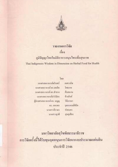 ภูมิปัญญาไทยในมิติอาหารสมุนไพรเพื่อสุขภาพ / จรินทร์ เทศวานิช...[และคนอื่น ๆ]