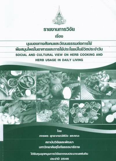 มุมมองทางสังคมและวัฒนธรรมต่อการใช้พืชสมุนไพรในอาหารและการใช้ประโยชน์ในชีวิตประจำวัน = Social and cultural view on herp cooking and herb usage in daily living / ภทรพร ยุทธาภรณ์พินิจ และคณะ