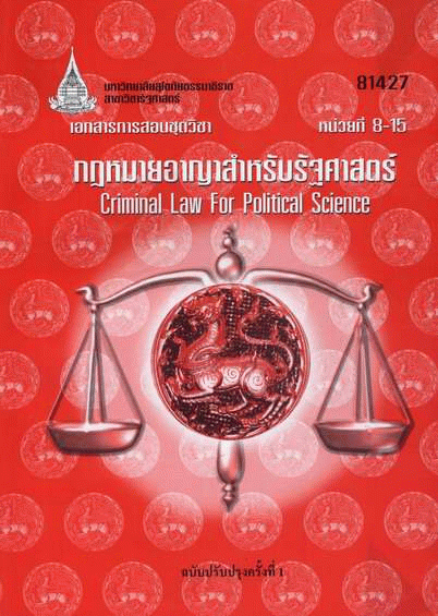 เอกสารการสอนชุดวิชา กฎหมายอาญาสำหรับรัฐศาสตร์ หน่วยที่ 8-15 / สาขาวิชารัฐศาสตร์ มหาวิทยาลัยสุโขทัยธรรมาธิราช.
