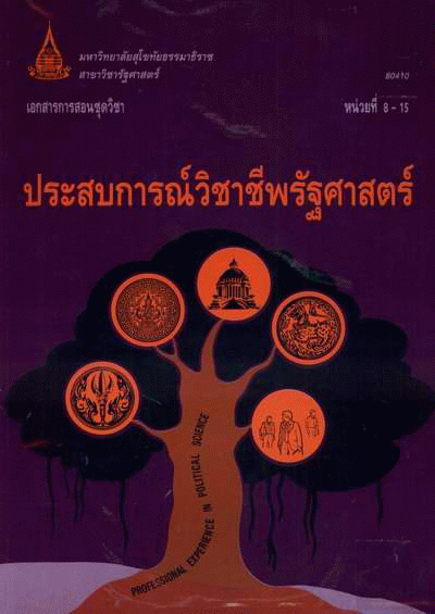 เอกสารการสอนชุดวิชา ประสบการณ์วิชาชีพรัฐศาสตร์ หน่วยที่ 8-15 / สาขาวิชารัฐศาสตร์ มหาวิทยาลัยสุโขทัยธรรมาธิราช.