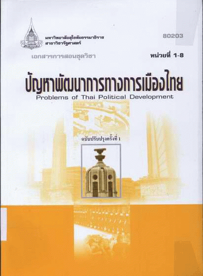 เอกสารการสอนชุดวิชา ปัญหาพัฒนาการทางการเมืองไทย หน่วยที่ 1-8 / สาขาวิชารัฐศาสตร์ มหาวิทยาลัยสุโขทัยธรรมาธิราช.