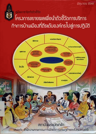 คู่มือการจัดทำตัวชี้วัดโครงการขยายผลเพื่อนำตัวชี้วัดการบริหารกิจการบ้านเมืองที่ดีระดับองค์กรไปสู่การปฏิบัติ / สถาบันพระปกเกล้า