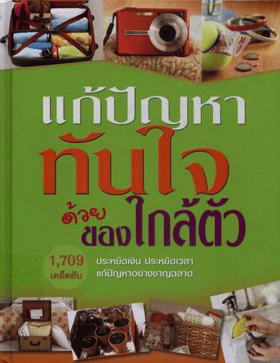 แก้ปัญหาทันใจด้วยของใกล้ตัว : 1,709 เคล็ดลับ ประหยัดเงิน ประหยัดเวลา แก้ปัญหาอย่างชาญฉลาด / ผู้เขียน Stephen Brewer ... [และคนอื่นๆ] ; ผู้แปล กิจจา ฤดีขจร ... [และคนอื่นๆ] ; บรรณาธิการประจำเล่ม เมวิตา วงศ์วิเชียรชัย.