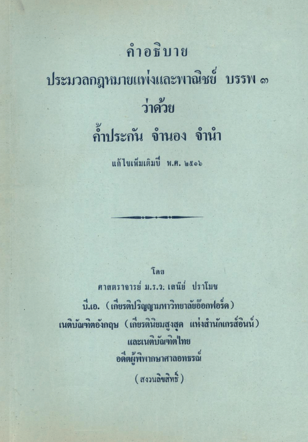 คำอธิบายประมวลกฎหมายแพ่งและพาณิชย์ บรรพ 3 ว่าด้วยค้ำประกัน จำนอง จำนำ แก้ไขเพิ่มเติมปี พ.ศ. 2516 / ม.ร.ว. เสนีย์ ปราโมช.