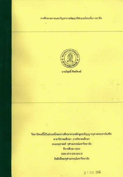 การศึกษาสภาพและปัญหาการพัฒนากีฬามวยไทยเพื่อการอาชีพ / วิสุทธิ์ ทิพย์พงษ์.
