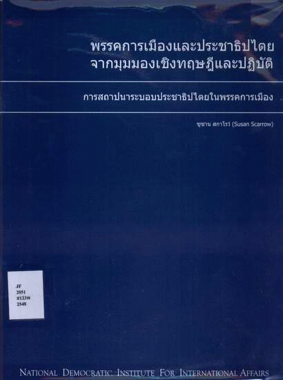 พรรคการเมืองและประชาธิปไตยจากมุมมองเชิงทฤษฎีและปฏิบัติ : การสถาปนาระบอบประชาธิปไตยในพรรคการเมือง / ซูซาน สกาโรว์.