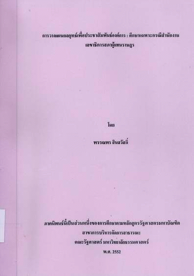 การวางแผนกลยุทธ์เพื่อประชาสัมพันธ์องค์การ : ศึกษาเฉพาะกรณีสำนักงานเลขาธิการสภาผู้แทนราษฎร / พรรณพร สินสวัสดิ์.