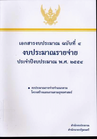 เอกสารงบประมาณ ฉบับที่ 4 งบประมาณรายจ่าย ประจำปีงบประมาณ พ.ศ. 2554 งบประมาณรายจ่ายจำแนกตามโครงสร้างแผนงานตามยุทธศาสตร์ / สำนักงบประมาณ.