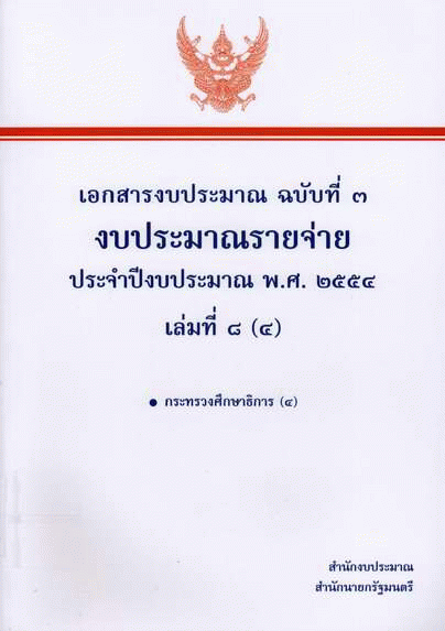 เอกสารงบประมาณ ฉบับที่ 3 งบประมาณรายจ่าย ประจำปีงบประมาณ พ.ศ. 2554 เล่มที่ 8 (4) กระทรวงศึกษาธิการ (4) / สำนักงบประมาณ.