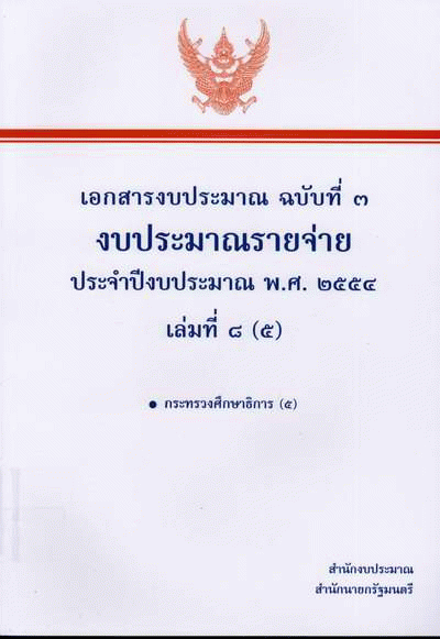 เอกสารงบประมาณ ฉบับที่ 3 งบประมาณรายจ่าย ประจำปีงบประมาณ พ.ศ. 2554 เล่มที่ 8 (5) กระทรวงศึกษาธิการ (5) / สำนักงบประมาณ.