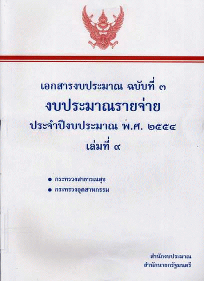 เอกสารงบประมาณ ฉบับที่ 3 งบประมาณรายจ่าย ประจำปีงบประมาณ พ.ศ. 2554 เล่มที่ 9 กระทรวงสาธารณสุข กระทรวงอุตสาหกรรม / สำนักงบประมาณ.