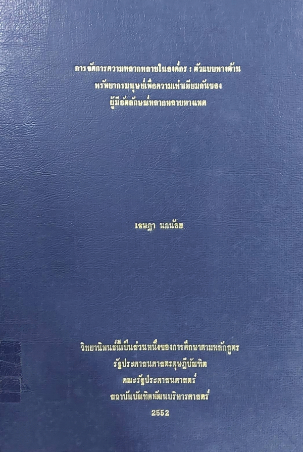 การจัดการความหลากหลายในองค์กร : ตัวแบบทางด้านทรัพยากรมนุษย์เพื่อความเท่าเทียมกันของผู้มีอัตลักษณ์หลากหลายทางเพศ / เจษฎา นกน้อย.