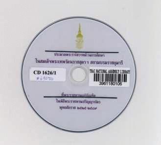 National Assembly Library of Thailand | Audio-Visual Materials collection | CD 1626/1, CD1626/2 (เรียกดูชั้นหนังสือ(เปิดด้านล่าง)) | พร้อมให้บริการ | 3961180105 |