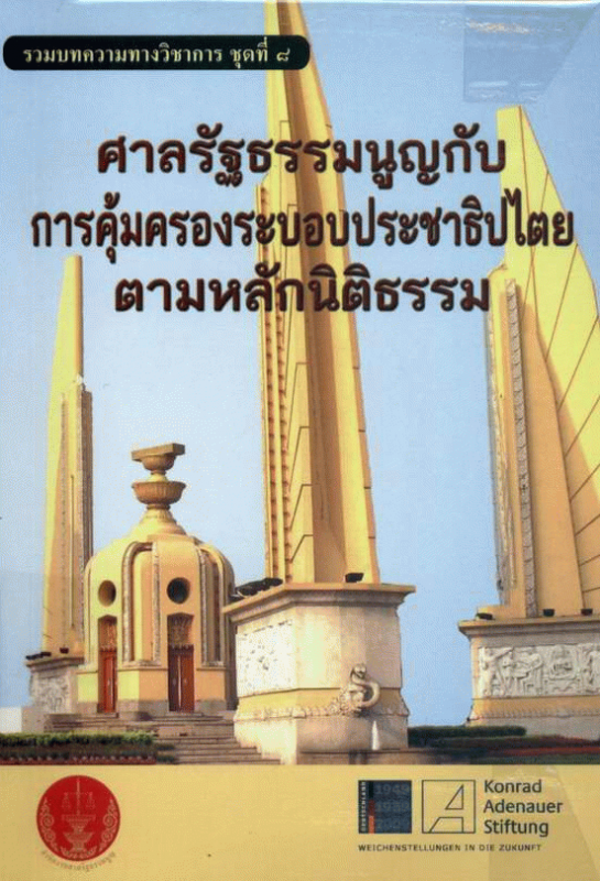 รวมบทความทางวิชาการของสำนักงานศาลรัฐธรรมนูญ ชุดที่ 8 : ศาลรัฐธรรมนูญกับการคุ้มครองระบอบประชาธิปไตยตามหลักนิติธรรม / สำนักงานศาลรัฐธรรมนูญ.