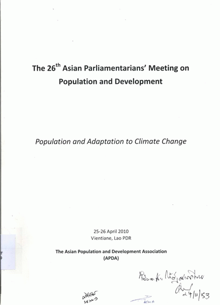 The 26th Asian Parliamentarians' Meeting on Population and Development : population and adaptation to climate change