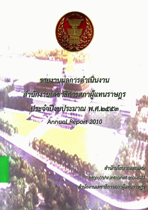 รายงานผลการดำเนินงานสำนักงานเลขาธิการสภาผู้แทนราษฎร ประจำปีงบประมาณ พ.ศ. 2553 = Annual report 2010 / สำนักนโยบายและแผน สำนักงานเลขาธิการสภาผู้แทนราษฎร.
