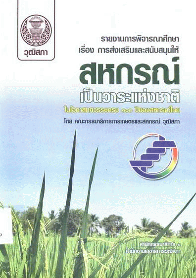รายงานการพิจารณาศึกษา เรื่อง การส่งเสริมและสนับสนุนให้สหกรณ์เป็นวาระแห่งชาติในโอกาสทศวรรษครบ 100 ปี ของสหกรณ์ไทย โดย คณะกรรมาธิการการเกษตรและสหกรณ์ วุฒิสภา / สำนักกรรมาธิการ 1 สำนักงานเลขาธิการวุฒิสภา.